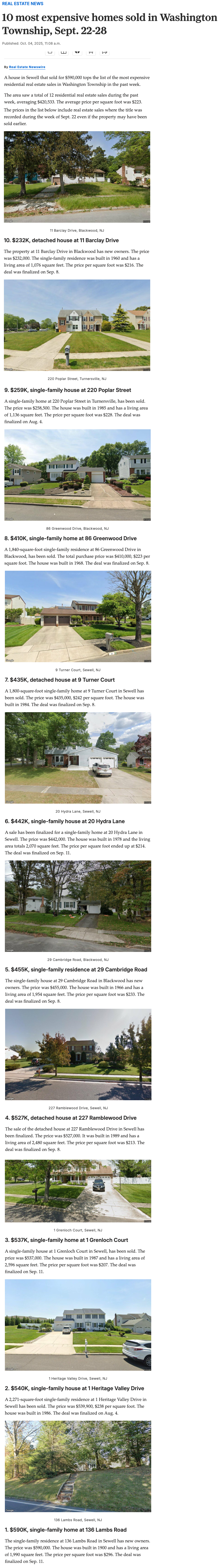 The content also includes alerts when a property is sold for a price or property size that exceeds the threshold value specified by the publisher. This helps editorial staff follow up on unusual property sales.
