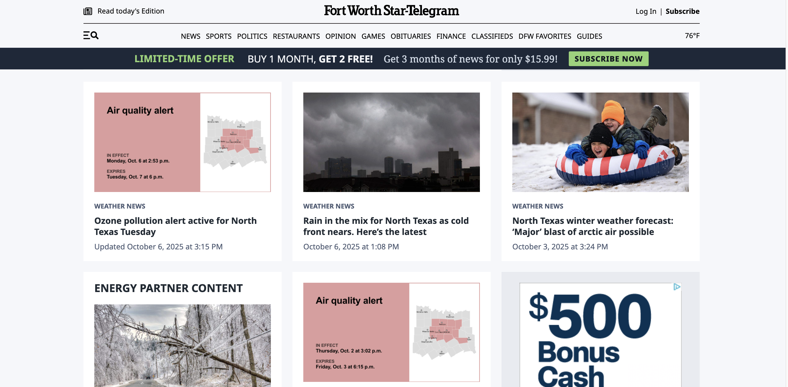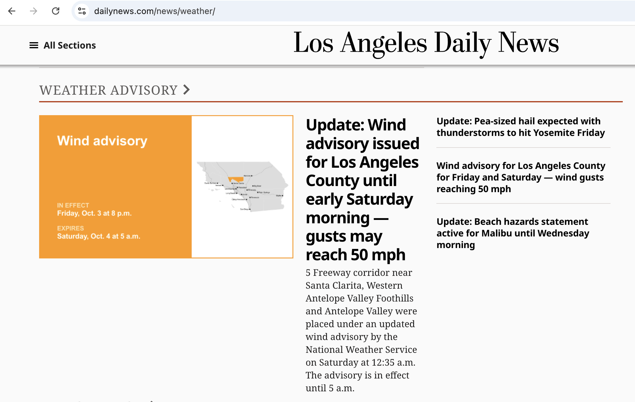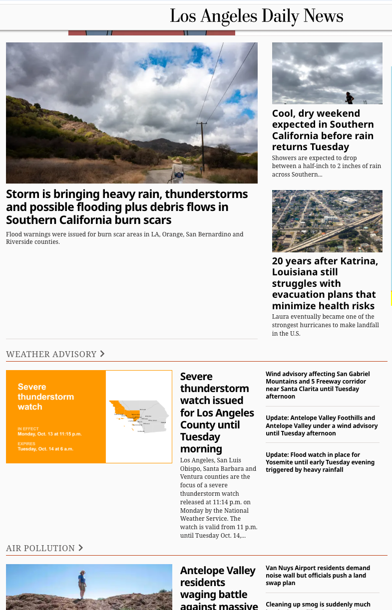 The content is delivered as a single article, daily, with updates as they are released by the National Weather Service (within 1 minute).